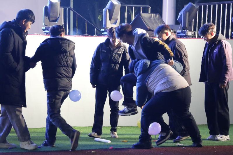 表演间隙,三大趣味互动游戏环节将现场气氛推向新高潮。“萝卜蹲”游戏中,6名同学分别扮演不同角色,随着口令快速做出反应;“数字炸弹”环节里,主持人设定1-100间的神秘数字,参与的同学轮流猜数缩小范围,当有人猜中“炸弹数字”时,工作人员即扎爆头顶气球,紧张又刺激的氛围让全场屏息又欢呼;“踩气球”游戏最是热闹,参赛同学脚踝系着气球在指定区域内躲闪、追逐,气球破裂的“砰砰”声与欢呼声交织在一起,不少围观同学也跟着呐喊助威,草坪上满是奔跑的身影与灿烂的笑容。