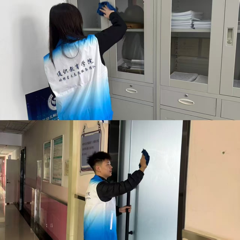 学前教育学院团总支组织各团支部开展系列志愿活动,立足校园开展教室等区域精细化清扫,打造净美校园,将劳动实践与思想教育有效结合;通过观影、研讨、诵读雷锋日记等形式开展主题团日,同学们结合幼教专业畅谈新时代“螺丝钉”精神,深化专业认同感。