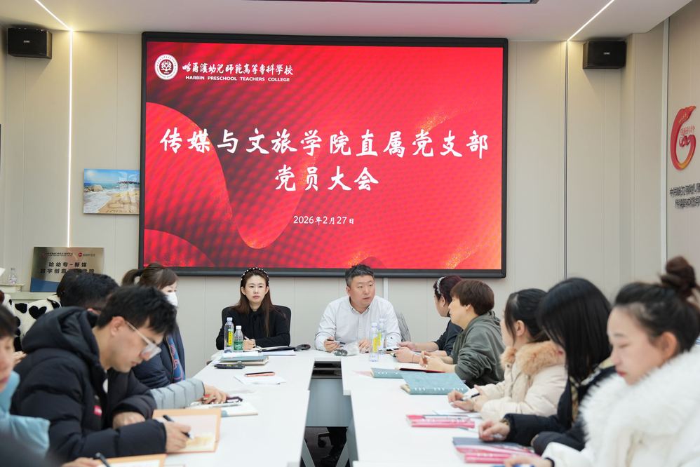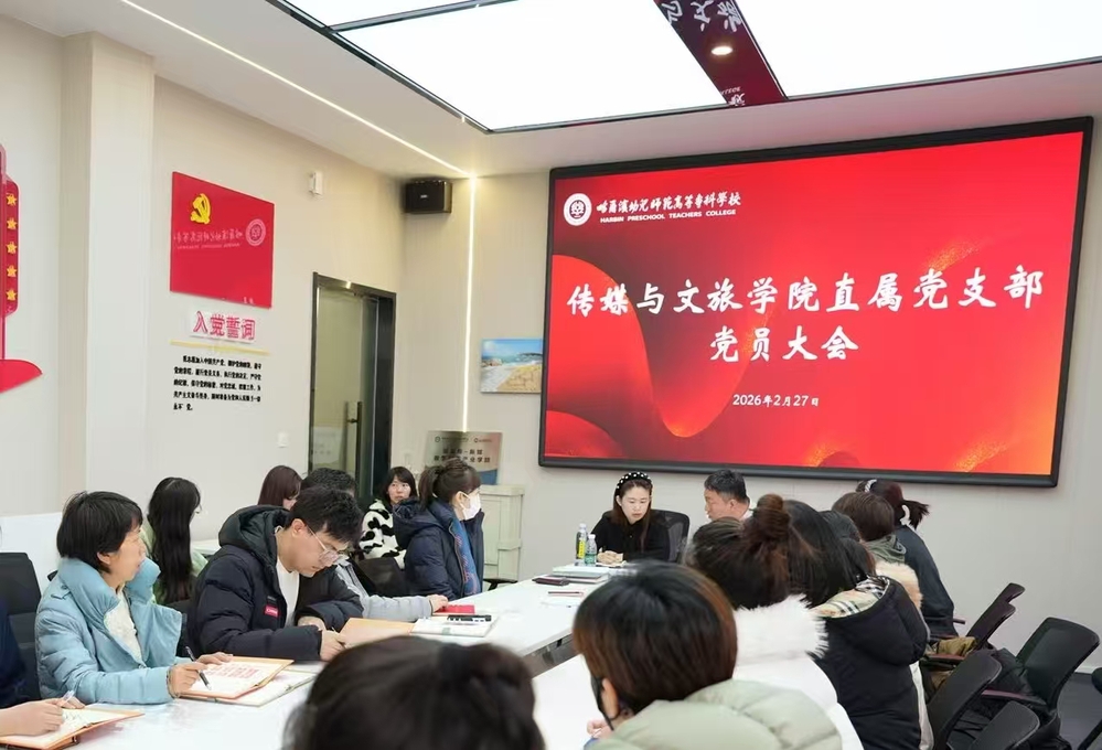 近日,传媒与文旅学院直属党支部召开2026年春季学期第一次全体党员会议。会议由党支部书记王雷主持,支部全体党员参加。会议深入学习贯彻学校党委战略意图及陈威书记在新学期工作会议上的讲话精神,围绕“二次创业”背景下的党建与业务深度融合,研究部署新学期党建重点任务,动员全体党员以“走在前、作表率”的姿态,为学院高质量发展提供坚强政治保证。