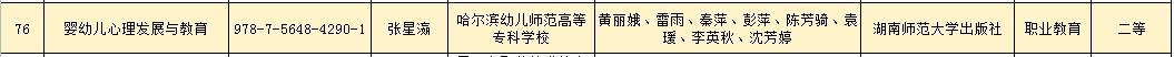 近日,黑龙江省教育厅发布《关于第二届省教材建设奖优秀教材推荐(认定)名单的公示》,拟认定第二届黑龙江省教材建设奖优秀教材(职业教育与继续教育类)86种教材,我校共有四部教材获省级优秀教材奖。其中《美术与幼儿美术创作》获优秀教材一等奖,《幼儿游戏与指导》《学前儿童发展心理学》《婴幼儿心理发展与教育》获优秀教材二等奖。这一成果的取得,标志着我校“三教”改革的进一步深化,教材建设质量提升不断取得新的突破。