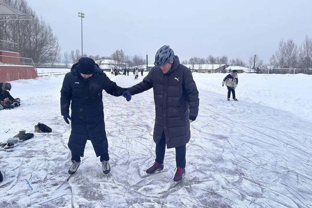 迎风雪、战严寒,教师们克服重重困难,为全校师生开展冰上课教学。课前,各位教师提前布置场地,向同学们传达教学安全注意事项,提醒学生做好保暖措施。同时,通知体委选取代表有序求取器材,充分打好教学准备“提前量”。课中,教师们带领同学们充分热身,采取结对互助的方式共同学习,实施“八点教学法”传授单脚支撑、单脚向前滑行、双脚交叉滑行等技能动作,在保障学生安全与教学质量的同时,也保障学生充分体验冰上运动的魅力与快乐。课后,教师们组织学生队伍有序离开、归还冰鞋,擦拭冰雪、清点数量并做好登记记录。