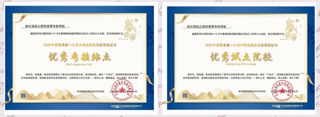 为认真贯彻落实《国家职业教育改革实施方案》精神,教育部启动了“1+X”证书制度试点工作。我校光荣地成为全国1+X空中乘务职业技能等级证书考试考核站点。并被评为“2020年度教育部1+X空中乘务职业技能等级证书优秀试点院校”及“2020年度教育部1+X空中乘务职业技能等级证书优秀考核站点”。