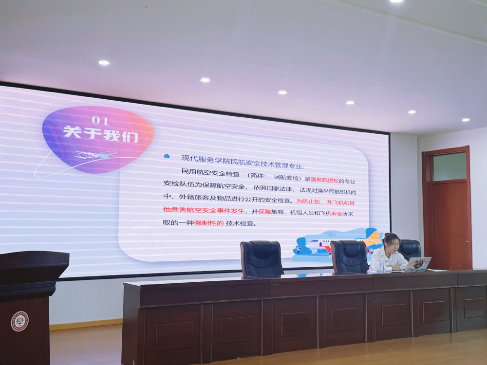 为帮助2025级新生快速了解专业概况、明确发展方向,2025年9月15日下午,现代服务学院民航安全技术管理专业隆重举办新生入学专业认知讲座。本次讲座由安检教研室主任邓昕玥主讲2025级民航安全技术管理专业全体新生参加此次讲座