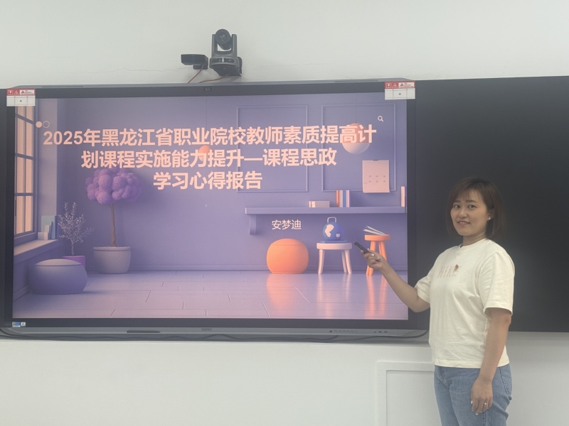 本次教研活动包括两项主要内容,一是由专业英语教研室主任郭冰洁分享在东北师范大学外国语学院为期一年的访学工作收获,二是由公共英语教研室教师安梦迪分享2025年黑龙江省职业院校教师素质提高计划课程实施能力提升的学习心得,旨在通过分享培训经验,提升全体教师的专业素养,实现资源共享、共同成长的目标。
