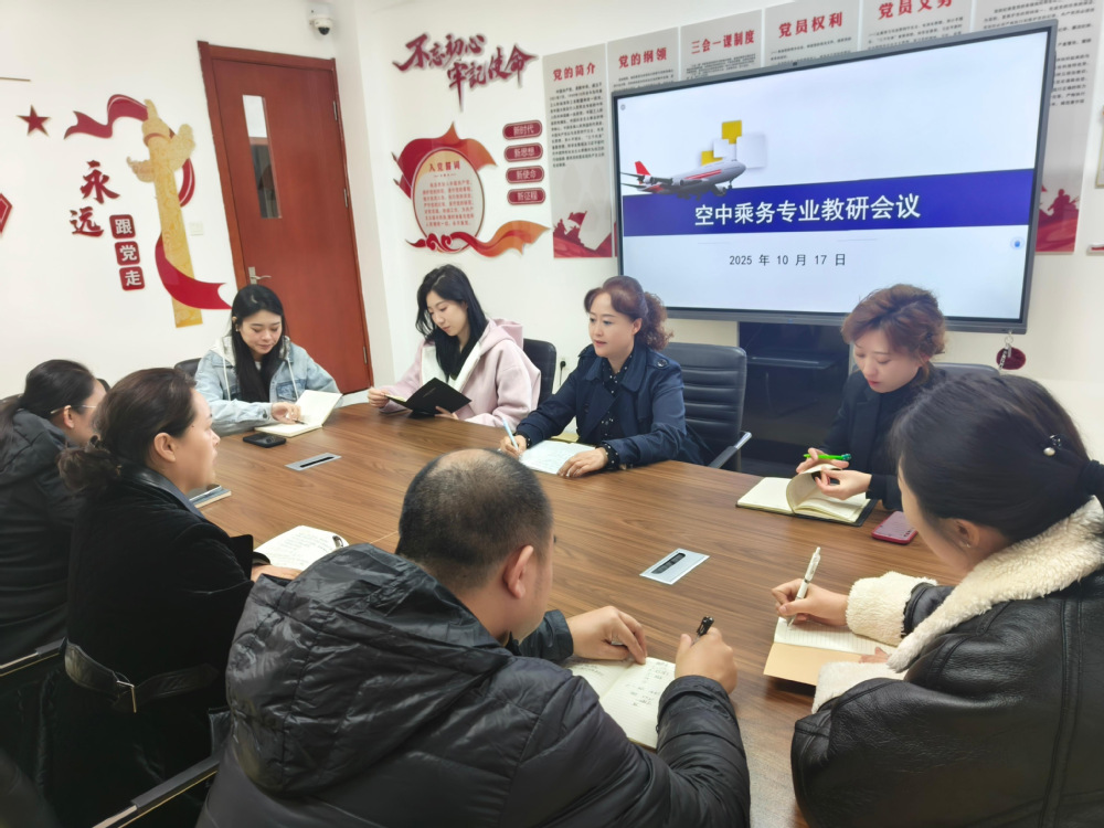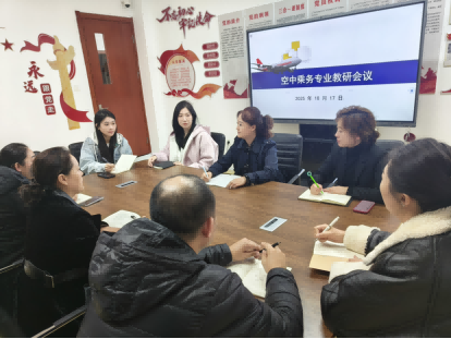2025年10月,空中乘务专业25级新生正式开始各门课程的学习,他们的专业学习适应与课堂教学质量,是空乘教研室关注的核心重点。10月17日,空乘教研室以“汇总新生开课实况、研讨教学优化策略”为主题,开展了一场务实高效的专题教研活动。系主任郭勇慧主持会议,全体教研室教师参会,大家以“轻松交流、解决实际问题”为原则,共同为新生专业学习“开好头、起好步”出谋划策。