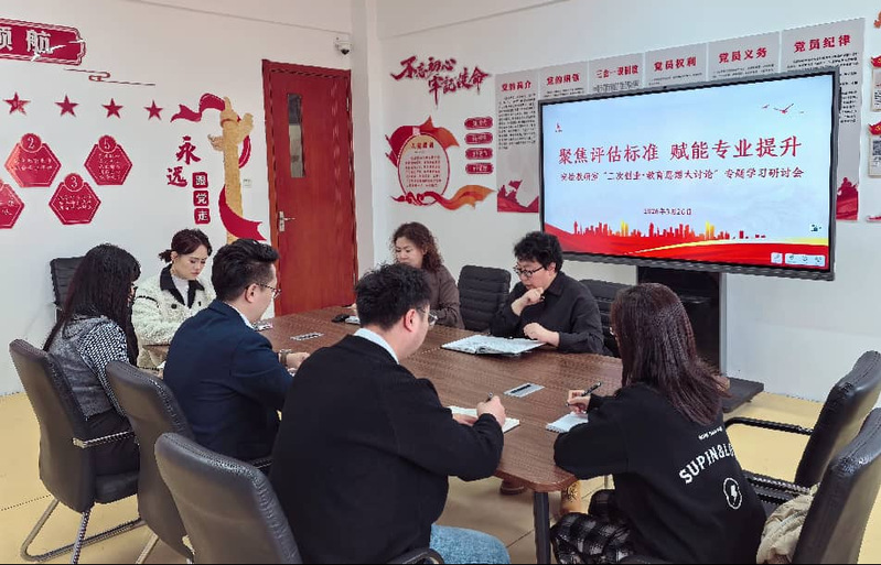 会上,邓昕玥带领全体教师逐条研读评估指标,围绕专业建设、人才培养、课程建设、教材管理、师资队伍、实习实训、教学评价、就业保障八大核心维度,系统解读指标内涵、观测要点与达标要求,重点学习专业对接产业、产教融合、实践教学、双师型队伍建设、课程思政、实习管理等关键内容,帮助教师明晰标准、把握重点、找准方向。
