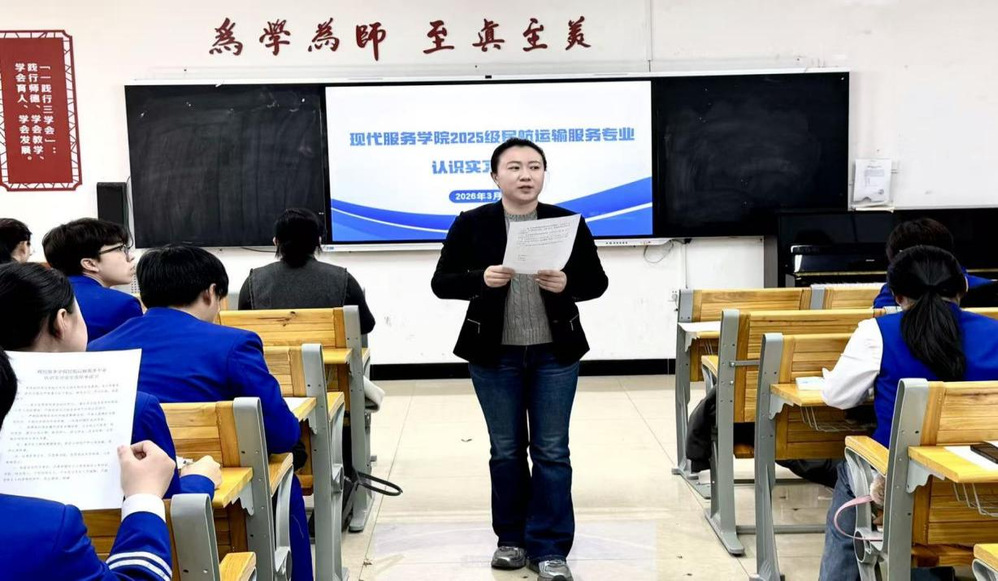 为明确认识实习目标、掌握实习要求,确保实习工作顺利开展,现代服务学院民航运输服务专业于2026年3月19日组织召开认识实习动员大会。专业负责人刘倩、实习指导教师及2025级民航运输全体学生共同参会,会议对即将开展的认识实习进行全面部署与动员。