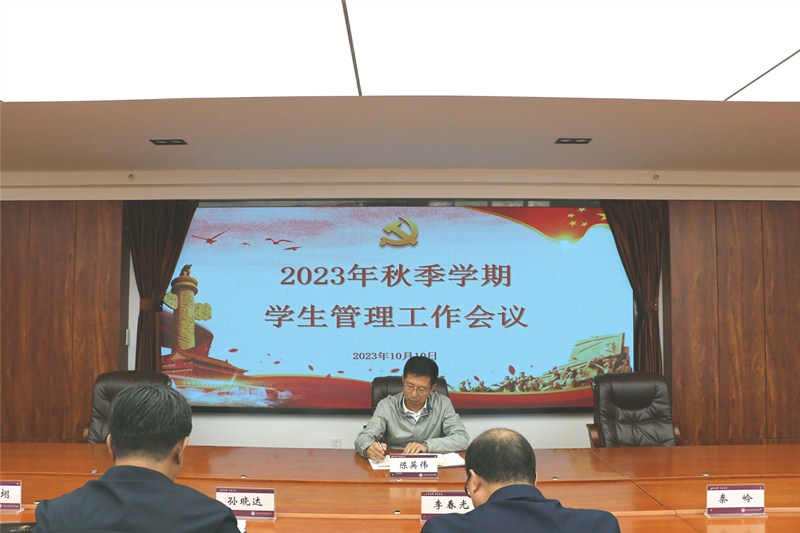 为扎实有效推进新学期学生教育管理工作,10月10日,学校召开了2023年秋季学期学生管理工作会议。党委副书记陈英伟,党委宣传统战与工会工作部、学生工作处、团委、心理健康教育中心负责同志及各二级学院主管学生工作领导、学工负责人参加会议。