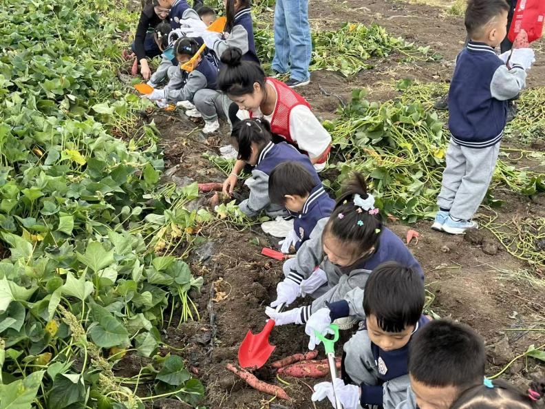 地瓜田成“寻宝乐园”,圆地瓜藏于土下。志愿者示范“沿藤轻刨”,强调 “丰收需耐心”,再带孩子刨土。地瓜出土时,孩子雀跃相拥“丰收成果”。志愿者引导:“坚持劳动才得‘宝’,做事要像丰收般有耐心”,培养孩子劳动毅力,共享丰收喜悦。