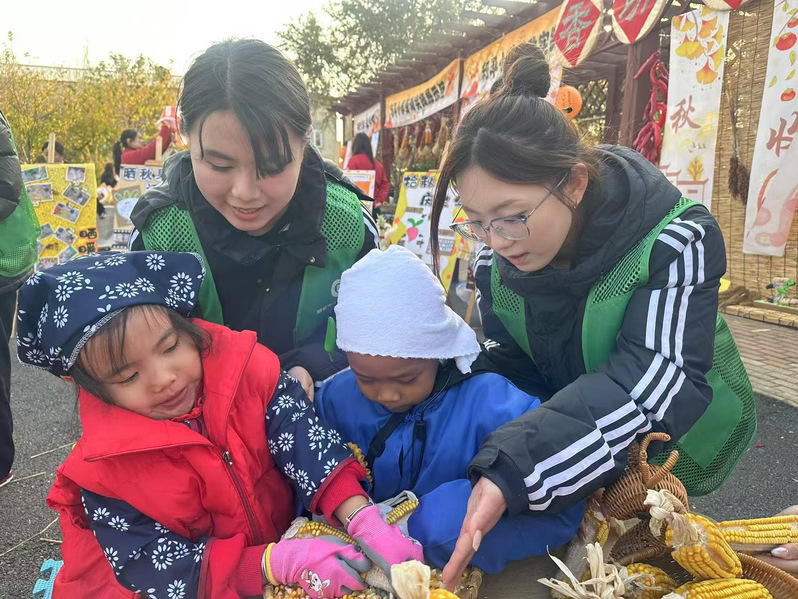 室内课程观摩环节,作为香坊区校园丰收节志愿者的积极分子,分组走进二楼“魔法厨房” 与一楼思政课堂。《豆滋豆味》课上,大家亲手加工豆类食材,习得传统美食技艺,深悟 “一粥一饭当思来之不易”;《行走的思政课・农耕之源》课堂,借图文讲解与实物展示,系统研习农耕文明发展史,领会 “耕读传家” 文化基因。课程间隙,志愿者主动与授课教师交流,探讨劳动教育、思政元素与学前教育活动的融合设计,思考如何通过趣味课堂培育幼儿劳动意识与节约习惯。此次服务既提升专业实践能力,更强化 “党建引领业务发展” 认知,契合 “强国行” 专项行动 “深化党建与业务融合互促” 要求。