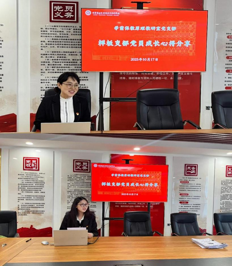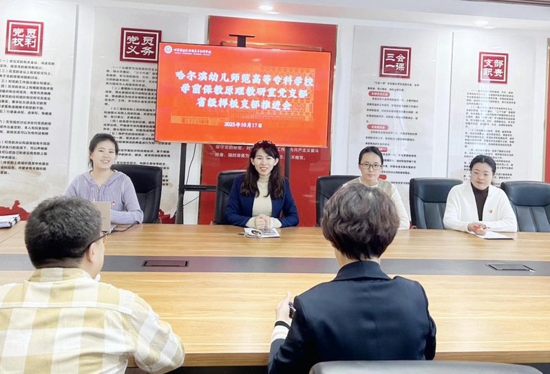 2025 年 10 月 17 日,中共哈尔滨幼儿师范高等专科学校学前教育学院学前保教原理教研室党支部委员会如期召开省级样板支部推进会。校党委组织部部长邹祥炎莅临指导,党支部全体党员参会,共同为样板支部建设谋思路、促提升。