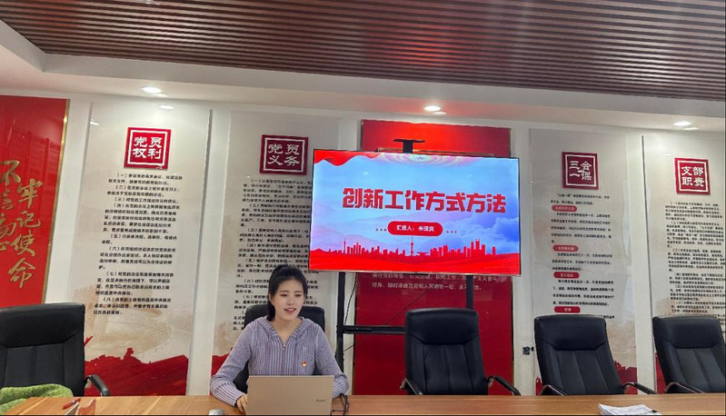 蔡洪霞聚焦“三会一课”规范落实,从支委会、党员大会、党课三方面汇报具体情况。3月至今,支部严格遵循上级党组织要求,以“规范流程、深化学习、锤炼党性”为核心,召开支委会7次、党员大会7次、党课3次,将“三会一课”与业务发展深度融合,确保支委会规范高效、党员学习入脑入心、党课内容实用易懂。