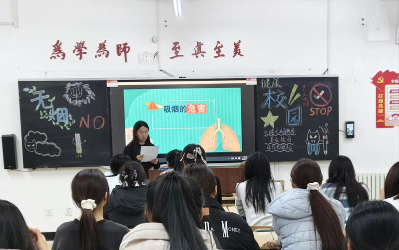 “模拟拒绝吸烟”情景演练中,同学们围绕社交场合递烟、朋友劝烟等真实场景分组演绎,构思“礼貌说明健康诉求”“借故转移话题”“科普危害劝退”等应对方式,在角色扮演中掌握坚定且得体的拒烟技巧。