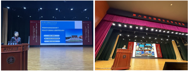 在教育数字化转型与高质量发展的时代浪潮中,11月22日至23日,第六届全国项目式学习论坛在北京隆重举办。本次论坛以“数智赋能·融合创新:面向未来的项目式学习新样态”为主题,汇聚了全国教育行政部门、师范院校、教研机构及幼儿园中小学的专家学者与一线教育工作者,共同探论创新与实践路径。我校学前教育专业姜宇微老师、早期教育专业王煜涵老师受邀参会,并在论坛中精彩亮相,通过分享与案例点评为我校高水平专业群建设提供宝贵经验凝聚发展动能。