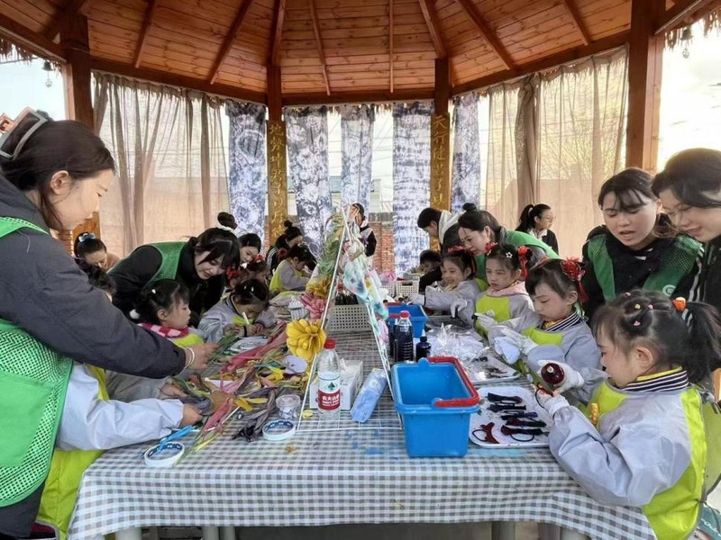 为切实强化劳动教育实施成效,构建党建赋能劳动育人、劳动育人反哺专业发展的良性互动培养方式,近日,学前教育学院学生第二党支部带领合作幼儿园的小朋友们走进“耕苗”劳动教育实践基地,开展“扎染拾趣悟匠心,劳动育美润童心”服务性劳动教育实践活动。活动以手工扎染为载体,让大学生在服务幼儿的过程中锤炼专业技能,让幼儿在动手实践中感知劳动乐趣与传统文化魅力。