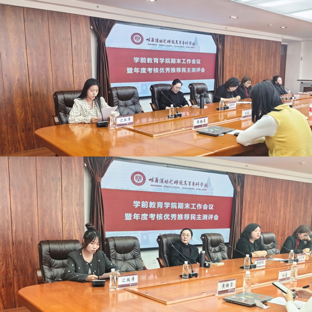 时光荏苒,岁聿云暮。为全面总结2025年工作成效,科学谋划2026年发展蓝图,同时有序推进年度教职工考核评优工作,进一步凝聚共识、鼓舞干劲,2026年1月5日,学前教育学院期末工作会议暨年度考核优秀推荐民主测评会在主楼会议室隆重召开。学院全体教职工参加本次会议。
