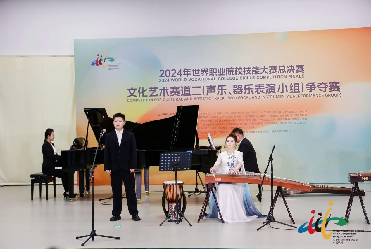10月25—29日,2024年世界职业学校技能大赛总决赛文化艺术赛道二(声乐器乐表演小组)争夺赛在浙江艺术职业学院举行。来自全国各省、市、自治区的57支代表队同台竞技,我校艺术学院由学生成语、张子键、蔡依然、张露组建的参赛团队荣获银奖,实现了学校在该赛项中的历史性突破。