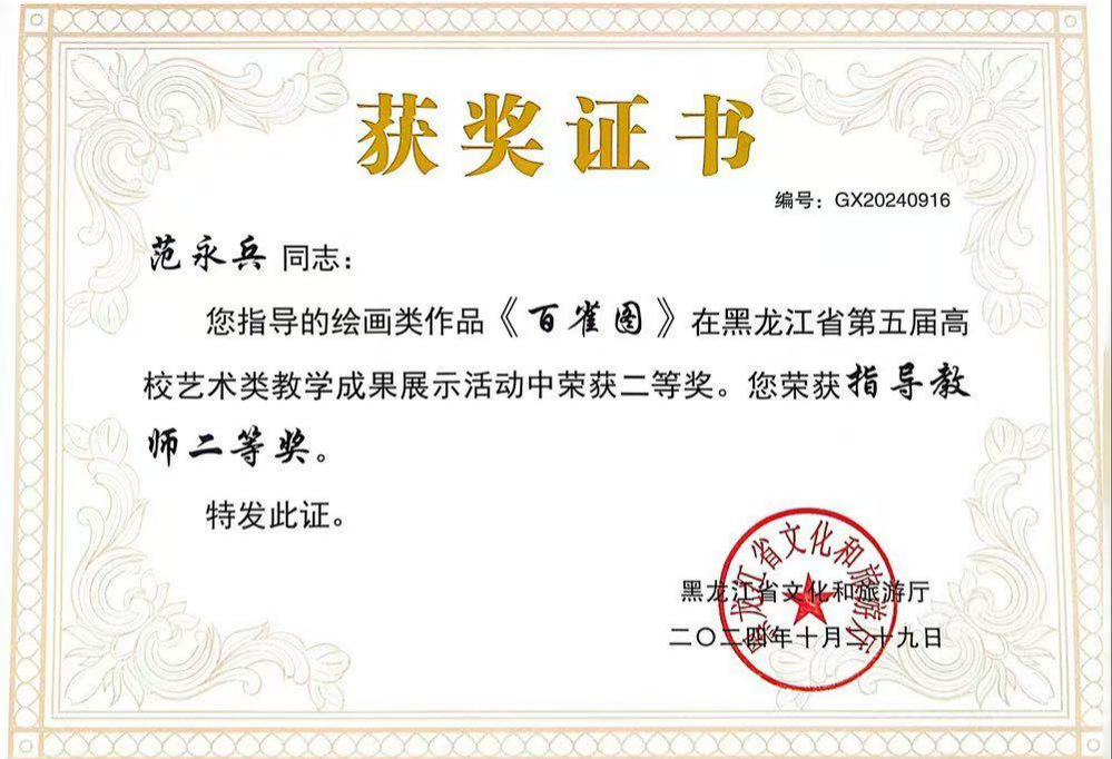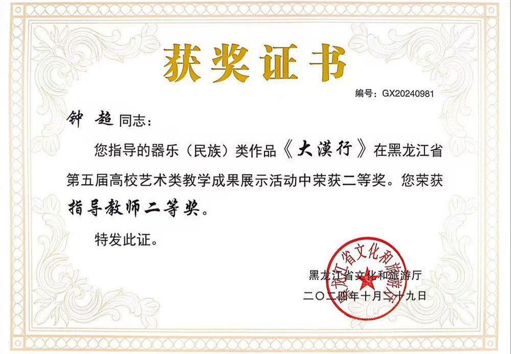 近日,黑龙江省文化和旅游厅发布了《关于印发黑龙江省第五届高校艺术类教学成果展示活动获奖节目和作品名单的通知》,艺术学院在此次教学成果展示活动中,凭借优秀的作品与师生们不懈的努力,共斩获14项奖项荣誉,其中,二等奖2项,三等奖12项,在众多省内高校参赛队伍中脱颖而出,喜获佳绩,为学院与学校争得了荣誉!