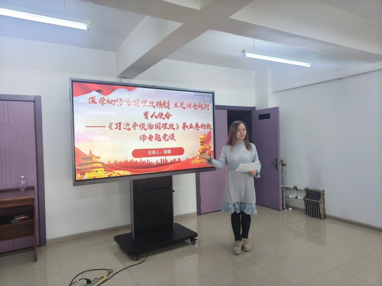 11月14日,支部书记战璐主讲了一场以“深学细悟治国理政精髓,立足讲台践行育人使命”为主题的党课。旨在通过深入学习《习近平谈治国理政》第五卷,引导广大教师深刻理解教育在国家发展中的战略地位,进一步明确新时代教师的使命与担当。