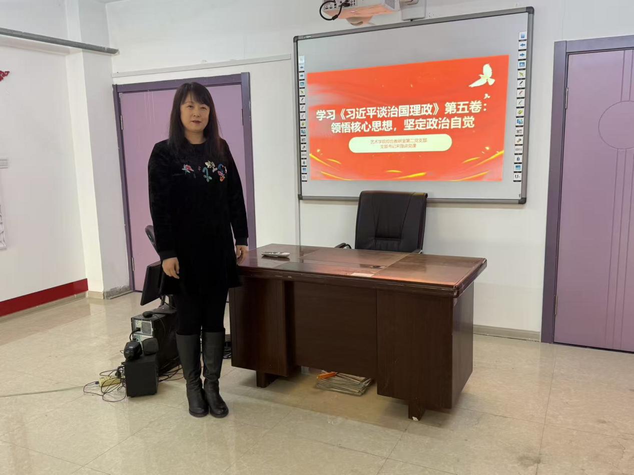 11月14日,艺术学院综合教研室第二党支部在党建室召开支部党员大会,全体党员精神饱满,准时参会。会议由支部书记宋薇主持,围绕“政治学习+专题党课+艺术实践”展开,内容丰富、形式新颖,现场氛围严肃而热烈。