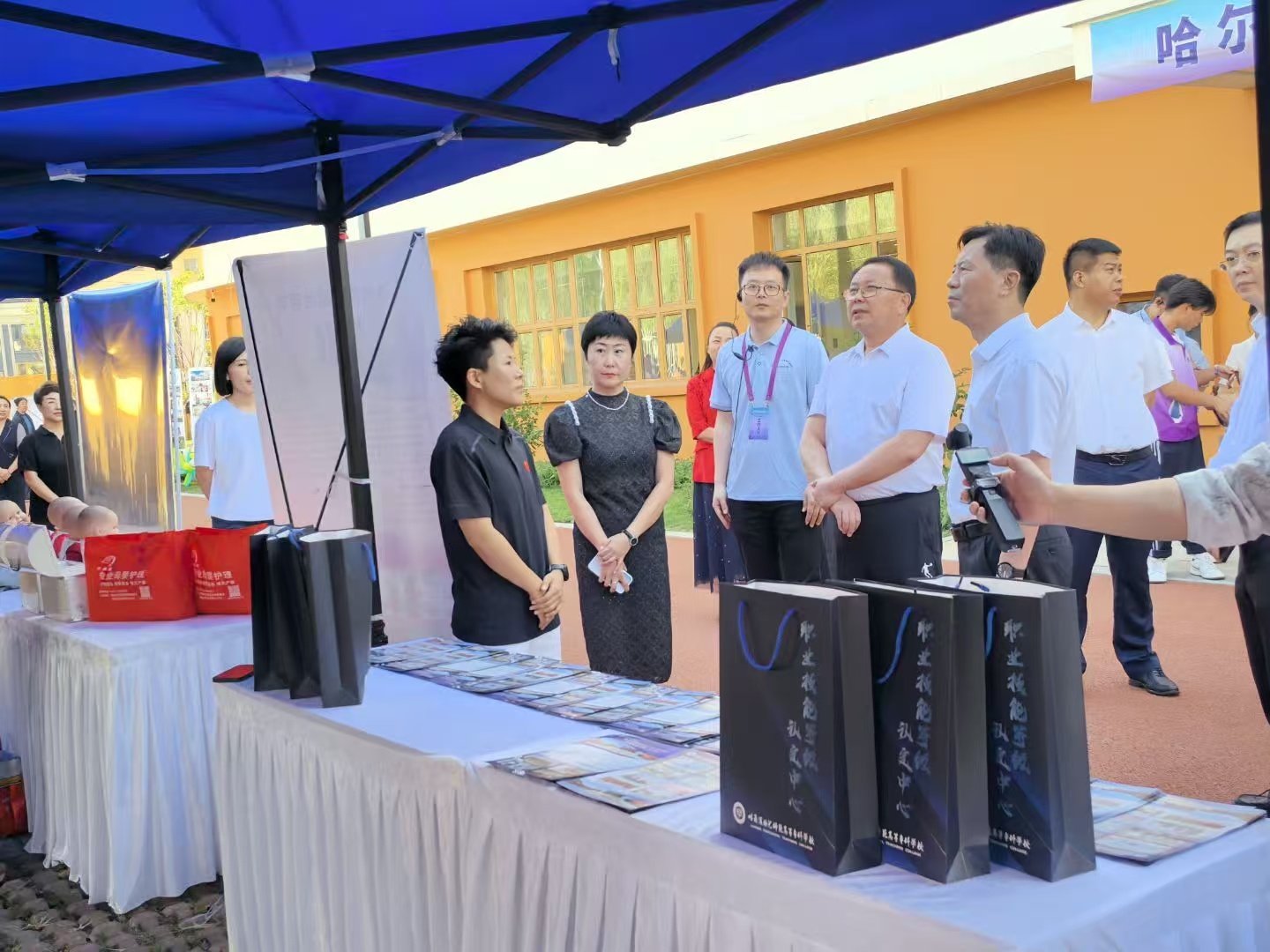 开幕式圆满结束后,与会领导来到哈幼专的展台前参观。展台上,学校全方位展示了在托育服务领域的教学成果、职业技能等级认定场地及社会服务领域取得的成就等内容。领导们认真听取讲解,不时进行询问,对哈幼专在托育服务人才培养、职业技能等级认定等领域取得的成绩给予了高度评价,并鼓励学校继续发挥专业优势,为行业培养认定更多高素质人才。