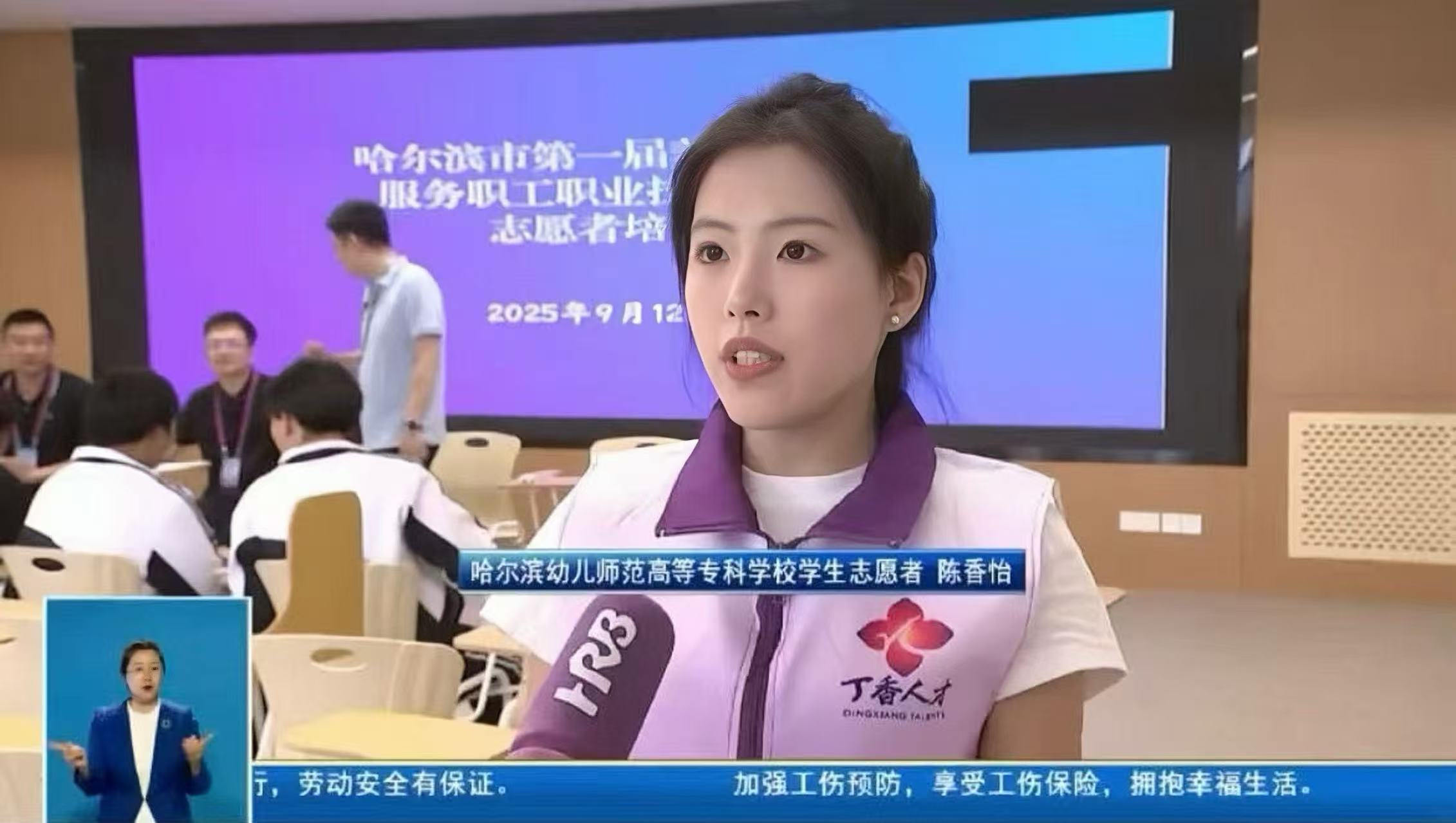 在本次大赛的筹备进程中,我校专业教师团队凭借扎实的专业知识,深度参与竞赛规则与评分标准的制定,确保赛事内容高度契合养老托育行业的实际需求,全面、精准地考察参赛选手的专业技能与综合素养。同时,学校精心选派20名优秀学生志愿者,在赛事组织、现场引导、成绩和录等工作中表现出色,展现出了良好的精神风貌与专业素养。我校学前教育学院2414班的陈香怡同学作为志愿者代表接受了现场媒体的采访。