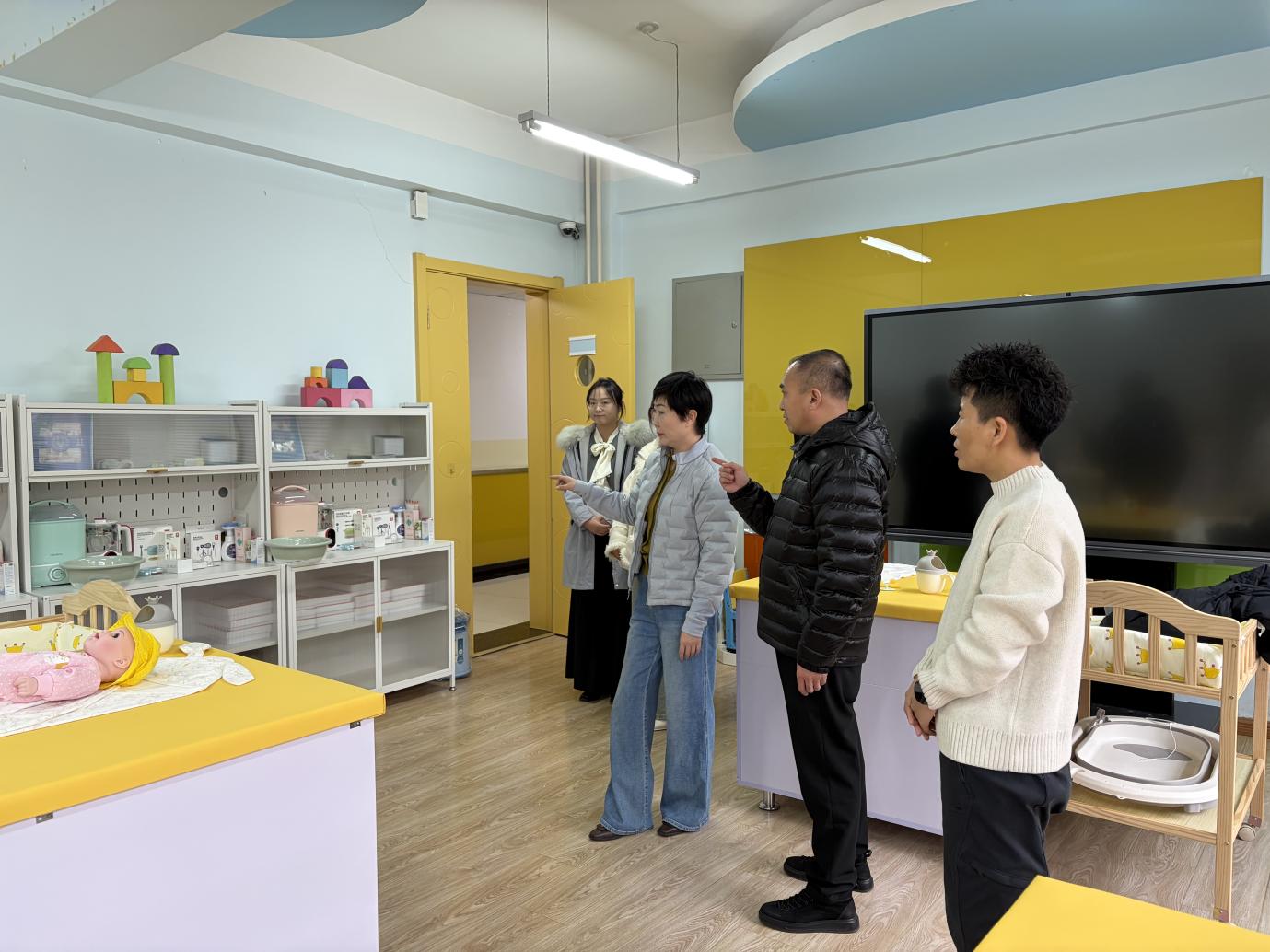 座谈会后,交流团参观了学前教育实训基地和高技能人才培训基地实训室。详细了解了托育实训室、高技能人才培训基地实训室的功能布局与场景应用,北安职教中心的老师们不时驻足记录,对哈幼专“理实一体化”的专业布局给予高度评价,认为实训设施的专业化、场景化设计为学生职业能力培养提供了有力支撑。