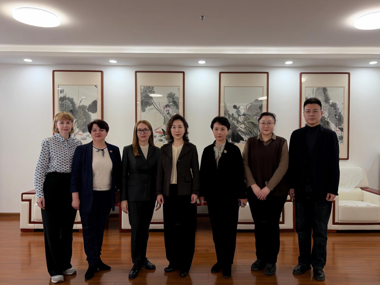 陈威书记在会客室会见了访问团一行,对访问团的到来表示热烈欢迎,并简要介绍了哈幼专的办学历史与发展现状。陈威书记指出,哈幼专始建于1952年,拥有七十余年幼儿师范教育底蕴,是黑龙江省高水平高职学校建设单位,学校聚焦学前教育、艺术教育等核心领域,形成了特色鲜明的办学体系,先后为社会输送数万名高素质幼教人才,在区域学前教育发展中发挥着引领作用。她表示,希望以此次访问为起点,深化双方在教育教学、文化交流等领域的合作,携手推动中俄学前教育与艺术教育协同发展。